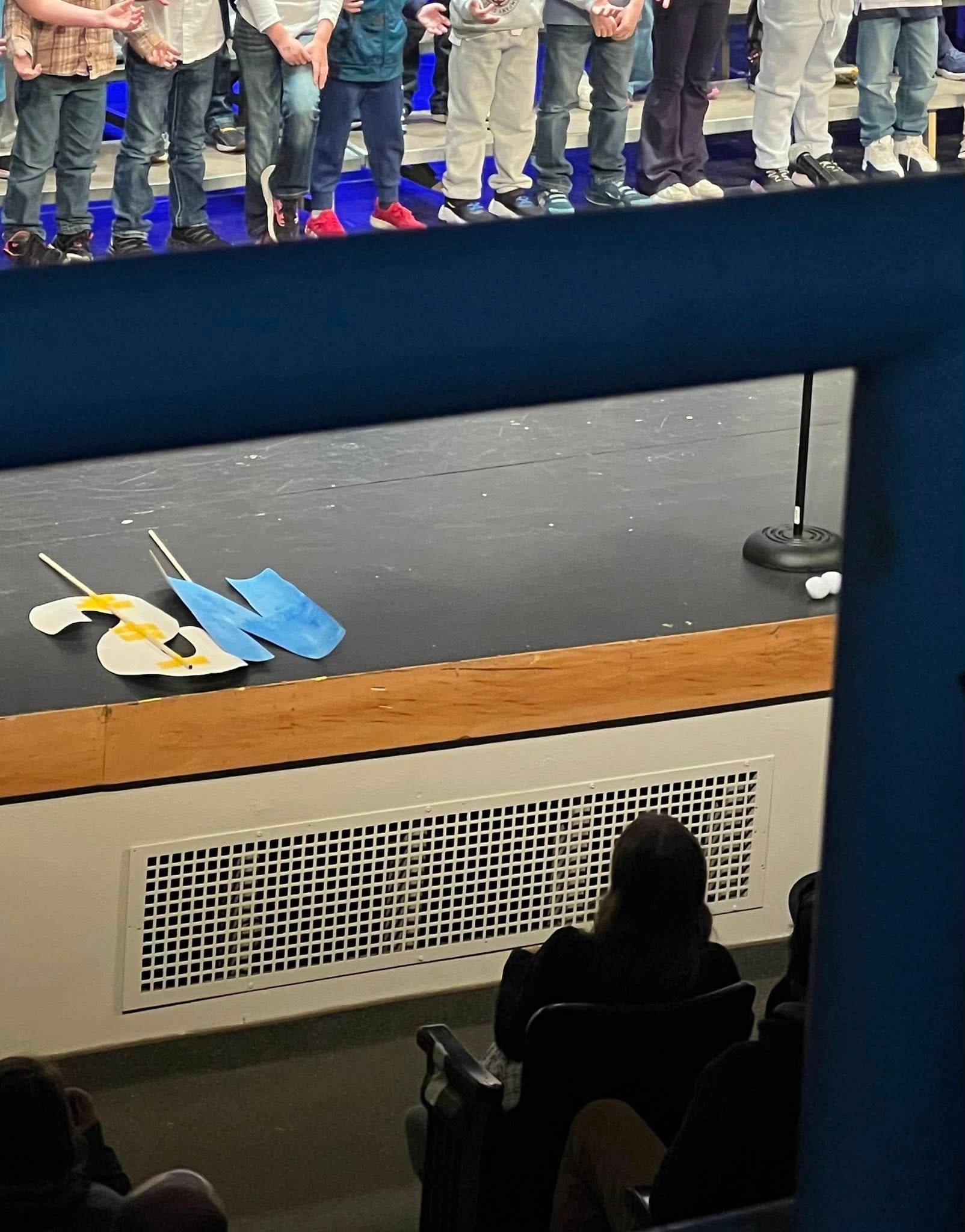 Well, I sang the book to them, and they joined me! I loved meeting her sweet students! After lunch, I sneaked back to the school to hear them perform in their holiday program. It was a joy for me to watch our daughter watching her class on stage!